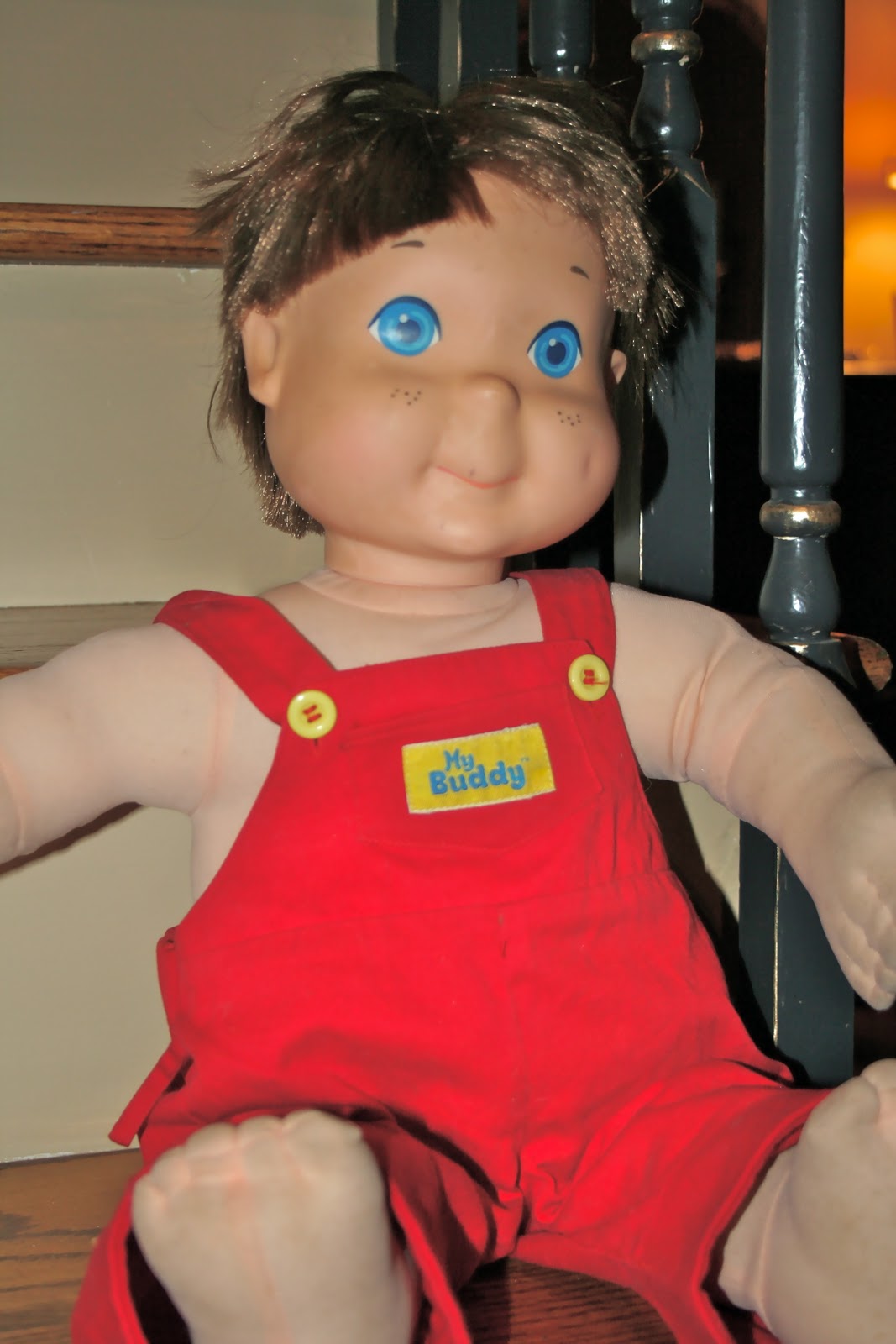 Back to my babies.... In 5K i had a crush on Ryan R. the wonderful thing is Daddyc and i still hang with him 26 years later and i still enjoy his company just as much.... We like to refer to him as "the GodFather" for those who have treated themselves to the movie old school... I also had a crush on Alex, in 2nd grade (gosh, was i STILL playing with baby dolls... good grief!) and still to this day talk to him often and hang out with him too.... Its like small town livin' Anyway, the my buddy doll was a cross.... sometimes he was ryan r. (we had 2 ryan's in our 5k class, as not to get confused) and some other times he was alex..... My buddy and me (you know the song!)